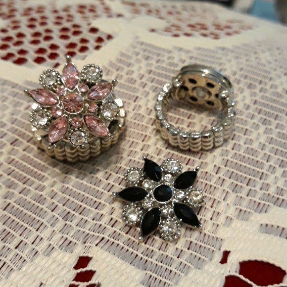 Snap button ring is a stretch band size S/M fits comes with 2 18mm charms. Interchangeable with other snap jewelry.