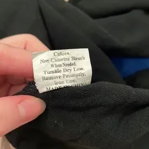 Lightweight blue, pink, and black collared jacket. Snaps included on the cuffs and pockets as well as the main body. I originally thrifted this, and it came without any tags mentioning a brand name. Only worn a couple of times, still in very good condition 🌸