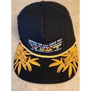 Snapback Black Hat with the saying"Smokin'em all since 1947 Fast shipping