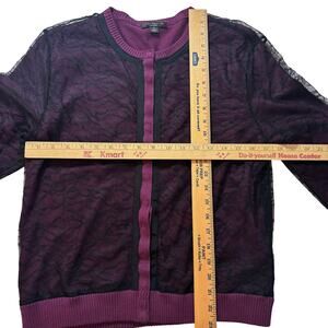 Snapfront Plum w black lace overlay Cardigan XL preppygoth witchy dark moody