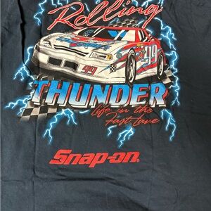 Experience comfort and style with the Snap-on black tee featuring a striking red logo. Perfect for casual outings.