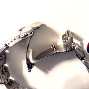 Watch has protective peel-away coverings on Band, Clasp, Front, Back