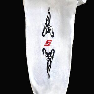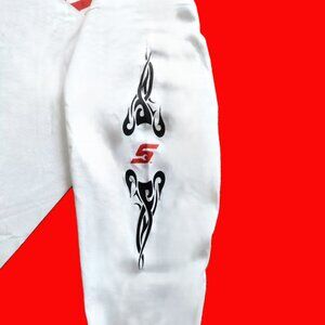 ~ SLEEVES (Long): Small Red Snap-on "S" logo with Black Scroll Graphics down both sleeves