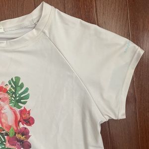 Snapper Rock White Short Sleeve with Tropical Bird decoration Rash Guard. Size 16.