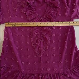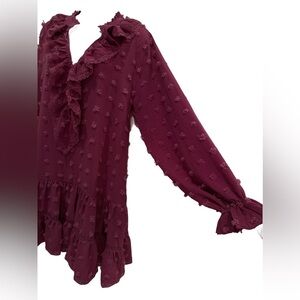 Step out in style with this elegant burgundy ruffle dress. Great for every day where, where with boots or leggings. Bohemian vibe. Excellent condition size small.