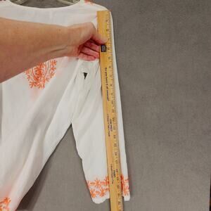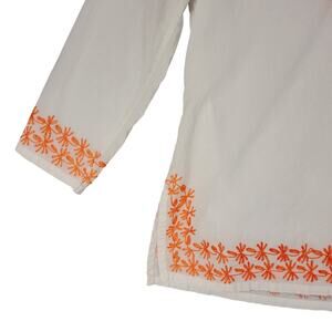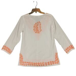 Snappy Turtle Tunic Top sz S Women White Orange Embroidered Paisley Floral Boho