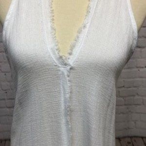 Snappy Turtle- White long linen dress with fringe detail, easy to wear and beautiful classic beach dress . size medium/large
