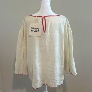 Sønderhaus Linen The West Set Top In Crema W/Red Embroidery NWT Size 2XL