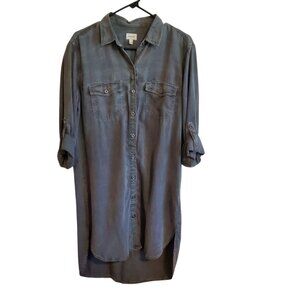 Sneak Peek Black Burnout Shirt Dress Tencel Lightweight Button Up Large