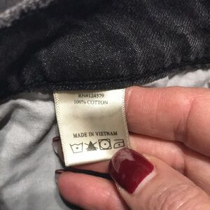 These black denim jean shorts are in great condition, even though they’re destroyed! From Sneak Peek, size Large. A little bit of destruction on back. High rise, 2” inseam. Please see pictures for measurements and details. Non smoking home.