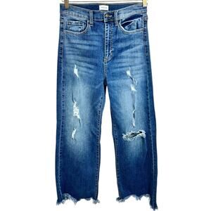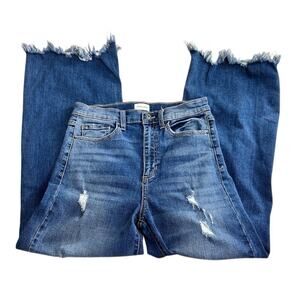 Sneak Peek Distressed Wide Leg Jeans Sz 7 28 Waist Frayed Hem High-Waist Stretch