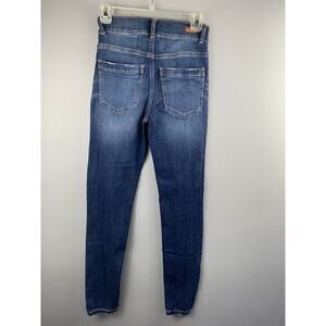 Sneak Peek Mid Rise Skinny Jeans Junior's Size 1 (25) Distressed Dark Denim