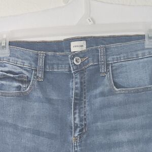 These Sneek Peek Women's Jeans in size 13 feature a flared/bell bottom style with a star design, perfect for a hippie or bohemian look. Made from a comfortable cotton blend denim fabric with a medium wash, these jeans have a high rise waist and a zip closure. The distressed detailing adds a trendy touch, while the stretch material ensures comfort and flexibility. With pockets and a versatile blue color, these jeans are machine washable and suitable for all seasons. Perfect for those looking to make a statement with their fashion choices.