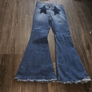 Sneak Peek Women Jeans Sz 13 Distress Flare/ Bell Bottoms W Star Design, Hippie
