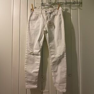 NWT and no defects. Size 11 Sneak Peek size 11 white distressed jeans. Mid-rise. Flat waist 15” front rise 9” and inseam 27”. Tote 17.