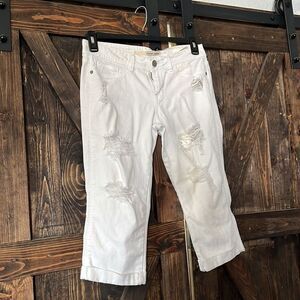Sneak Peek white denim distressed Capri white pants Sz-Med