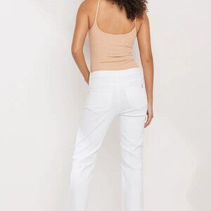 HIGH RISE CROPPED SOLID SLIM STRAIGHT LEG JEANS WITH RAW CUT HEM