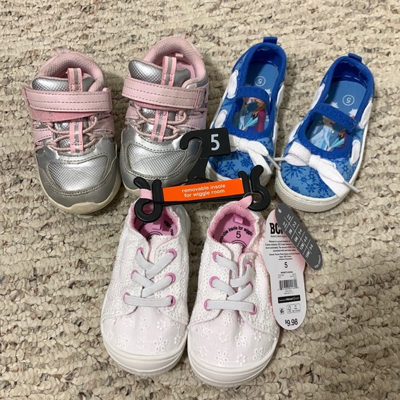 Three pairs of sneakers all size 5. Disney frozen one NWT