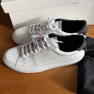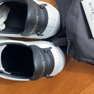 Black & white sneaker with Givenchy on each side of the sneakers with Givenchy paris on the back of the sneaker worn once comes with dust bag & box