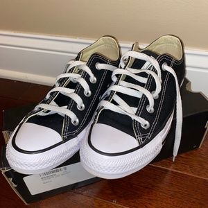 Black lowrise Converse sneakers, women's size 6. Worn twice.