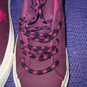 Step out in style with these chic women's sneakers. Featuring a vibrant pink and purple design, these shoes are perfect for adding a pop of color to any outfit. Comfortable and trendy, they're a must-have for your shoe collection.