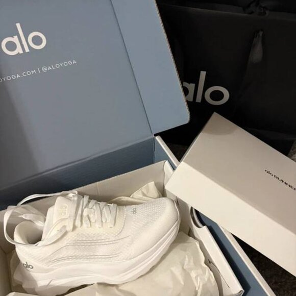 Brand new Alo Yoga runner sneakers in clean white color. Women’s US size 5. Never worn, ordered the wrong size. Lightweight, comfortable and stylish, perfect for gym, running, walking or everyday wear. Modern athleisure look, high-quality materials and great support. Feel free to message for more info or extra photos.
