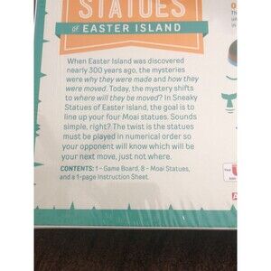 Contents: 1 game board, 8 Moai Statues and 1 page instruction sheet.