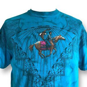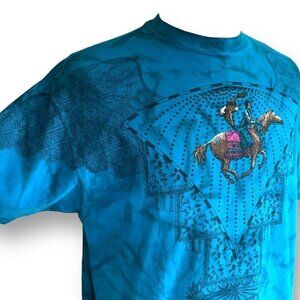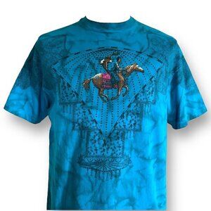 Sneaky Tees Vintage 1994 Mens Tshirt XL Blue Tie Dye Native American Rider Eagle