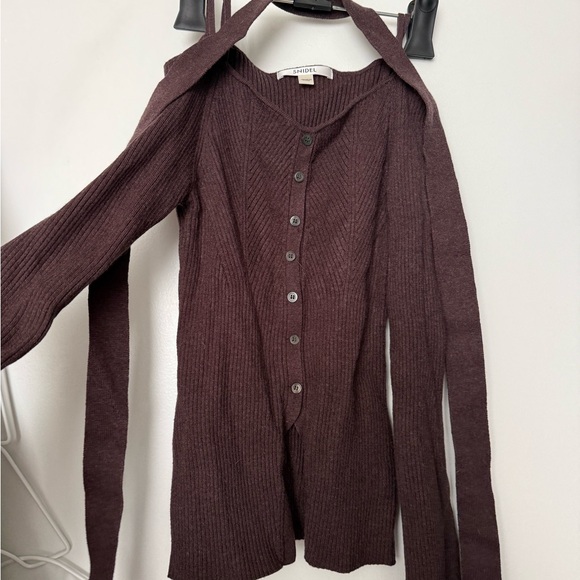 Snidel Brown Ribbed Button-Front Knit Cardigan