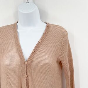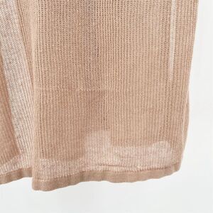 This Snidel maxi cardigan sweater is designed for women and comes in a versatile one-size fit. It features a V-neckline and long sleeves, crafted from soft, breathable sheer knit fabric in a solid beige color. The lightweight design includes a button-front closure, making it comfortable for fall wear. The garment requires hand wash care. Condition is pre-owned.