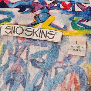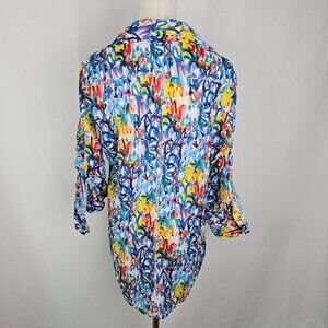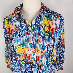 Sno Skins Colorful Grafiti Artsy Maximalism Button Shirt Large Blue Long Sleeve