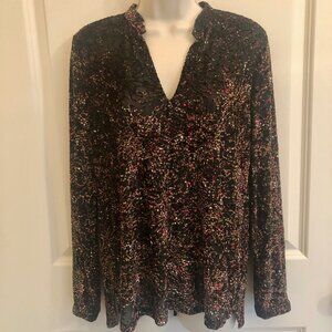 Sno Skins Long Sleeve V-Neck Raised Velour Multicolor Print Tunic Shirt Size M