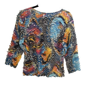 Sno skin women's blouse size large vintage y2k Crinkle Artsy phoebe buffay. Pullover V Neck shirt. Stretchy fabric. Fabric is raised & texturized. USA made.