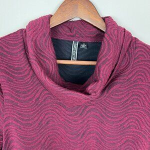 Sno Skins Top Tunic Womens Medium Burgundy Textured Cowl Neck Stretch Flared Hem