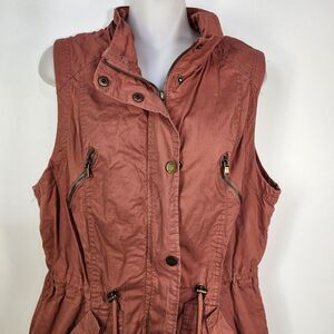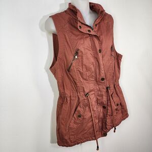 Snobbish Collection Womens Utility Vest Small Full Zip Cinched Tie Waist Rust