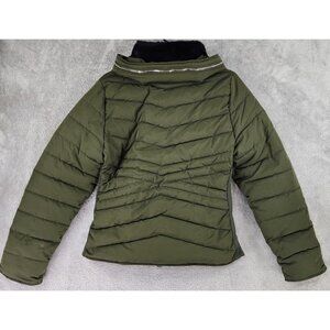 Snobbish Puffer Jacket Womens Large Olive Green Black Faux Fur Hooded Full Zip