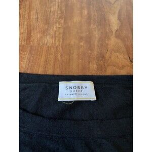Snobby Sheep Cashmere & Silk faux Leather Black Crew Neck Sweater Size 44 L/XL