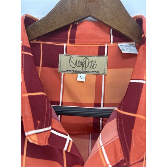 Snoop Dogg Clothing Company Button Down Street Shirt Men's L Orange Plaid