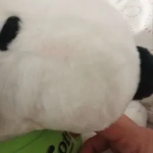 has a small make up stain on the nose. honestly I never tried removing it but I think it will come off. other then that he is good to go