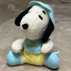 Snoopy Baby Stuffed Animal Plush Vintage Blue Yellow