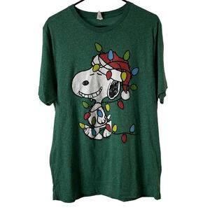 Snoopy Christmas Holiday Lights Tee T-Shirt XL Green Graphic 2016 Novelty