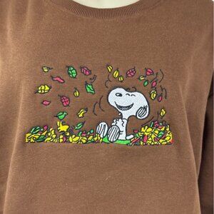 Snoopy Embroidered Brown Pullover Sweater Crewneck Soft Long Sleeve Womens
