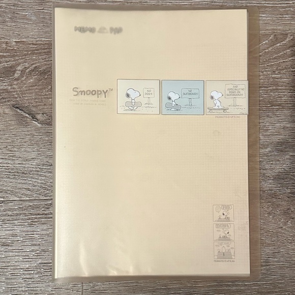 Snoopy themed file folder. Perfect for organizing and protecting documents. Cover is slighting translucent. Never used. Only stored.