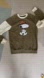 Olive green sweatshirt with Snoopy graphic. Cream sleeves add contrast.