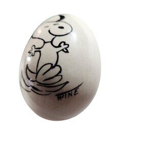 Snoopy Hand-Painted Ceramic Egg Signed By Artist F Pine Peanuts beagle easter