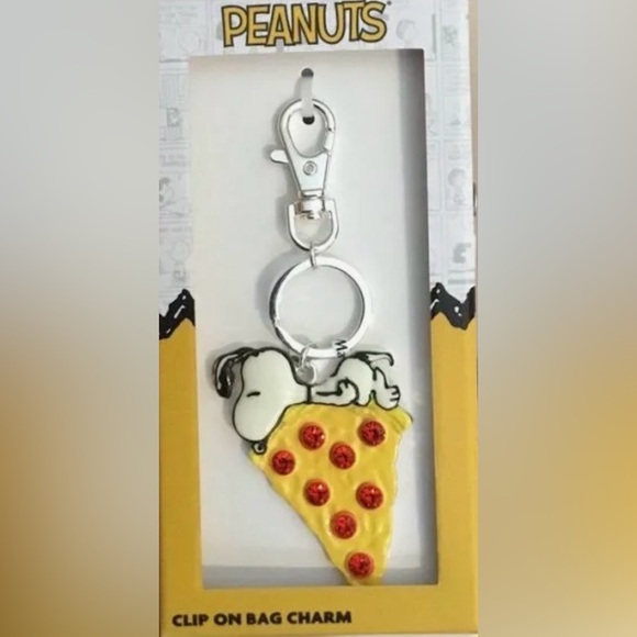 NWT Charming Snoopy keychain featuring pizza for the pizza and Snoopy lovers! It it such a cute addition to your bag charm collection.