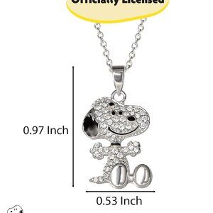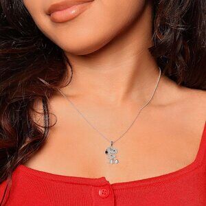 Features: Eye-catching necklace featuring a cubic zirconia-encrusted Snoopy pendant in a cute, welcoming pose. Adjustable chain with a lobster claw closure makes it easy to get the perfect fit. Silver flash plating adds a bright, modern shine. Perfect for everyday wear or gifting.