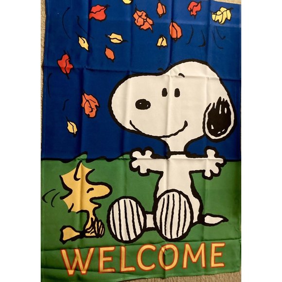 WELOME ! Snoopy & Woodstock say WELCOME ! Leaves are falling in the background. Has a sewn-in sleeve for pole;