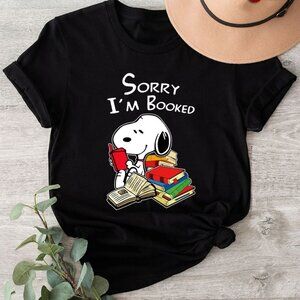 Snoopy Reading Book Meme T Shirt Sorry Im Booked Graphic Fan Gift Retro Cartoon