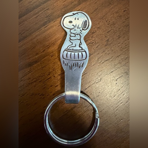 Handmade spoon keychain made by me from vintage stainless steel snoopy spoon! All my pieces are made from flatware found at estate sales, since this is an old used spoon there are imperfections in the metal.